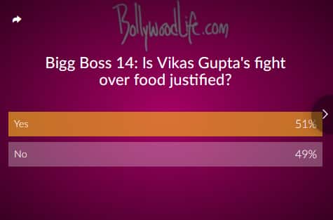 We had asked fans if they felt Vikas' argument over food was baseless. It was a really close result. While 51% agreed that his stance over food was justified, 49% felt it wasn't. Have a look at the result below: