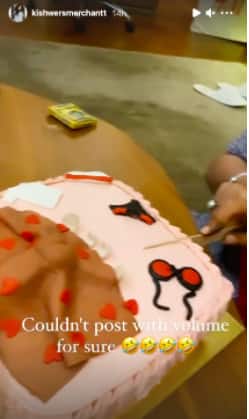 Kishwer Merchantt is one gorgeous mom-to-be. The lady has been quite active throughout her pregnancy. Well, her long time good friend, Gurneet Chaddha is going to get married soon. The ladies celebrated her bachelorette party at Grand Hyatt in Mumbai. They had a staycation. The bachelorette was a naughty affair. Kishwer Merchantt has posted a couple of pics from the party and she said she could not post the video for obvious reasons. We can see that the cake is quite kinky. From a d**k made of chocolate/caramel to fondants that resembled sexy lingerie sets, it was as kinky as it could be. It is a known fact that bachelorettes tend to be naughty affairs and kinky cakes are one of the works of the ceremony.